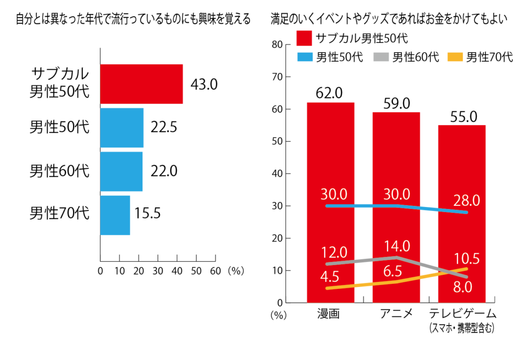 同組織での調査データをもとに、「サブカルおじさん」の特徴的なポイントを解説いたします。